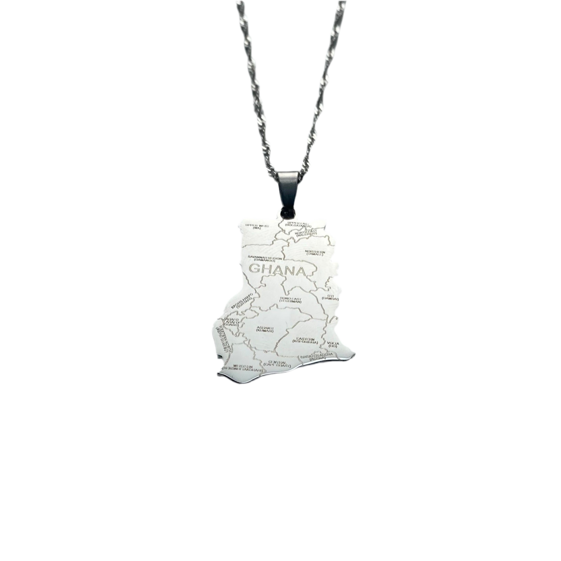 Represent the love of your roots with our Ghana necklace - featuring the cities